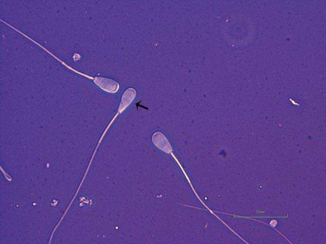 Differences in the severity of response between males with similar treatments suggest that some males may be genetically predisposed to develop pyriform heads in response to adverse environmental influences [3, 5, 29]. In most instances, there will be many other sperm abnormalities present in the ejaculate, indicating a disturbance in spermatogenesis has occurred. However, after removal of stress factors, males often return to normal sperm production [3].