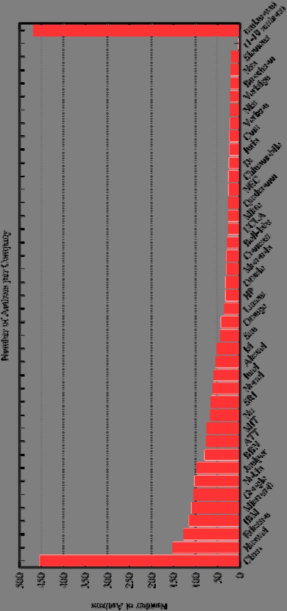 Figure 1.2. Number of authors publishing with different engineering companies between 1986 and 2020 (source: www.arkko.com /tools/rfcstats/co mpanydistr.html)