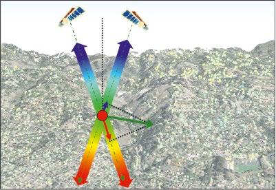 Satellite SAR interferometry measures only the projection of the three-dimensional displacement vector along the satellite line of sight. The data from any given interferogram are, therefore, single component distance measurements. However, it is possible to combine radar data acquired from different acquisition geometries to approximate two-dimensional displacement fields (Rucci et al., 2013). In fact, all SAR sensors follow near-polar orbits and every point on Earth can be imaged by two different acquisition geometries: one with the satellite flying from north to south (descending mode), looking westward (for right-looking sensors) and the other with the antenna moving from south to north (ascending mode), looking eastward. This is the reason why, by combining InSAR results from both acquisition modes, it is possible to estimate two components of displacement.