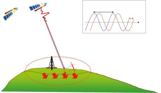 Therefore, if a point on the ground moves during the time interval between the acquisition of the two radar images with similar geometry, the distance between the sensor and the target changes, creating a phase shift proportional to the displacement (Fig. 2.1). Equation (2.3)