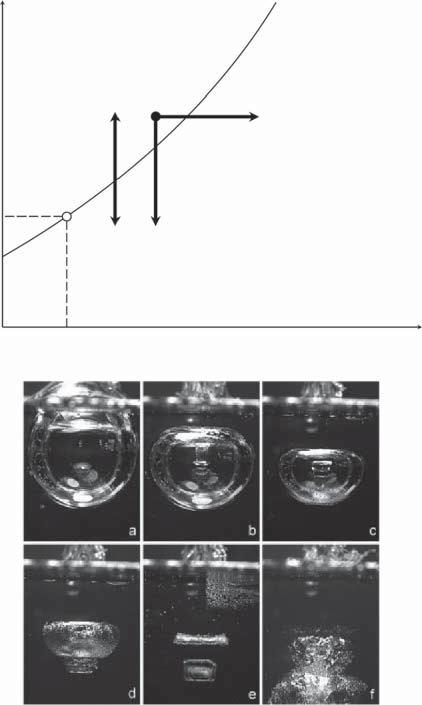Figure 1.2 (a) Boiling and cavitation illustrated in thermodynamic diagram (Source: Reprinted from [36], with permission from Meijn/Delft University of Technology) and (b) Graphic illustration of growth, implosion and collapse of bubbles in the cavitation process (Source: Reprinted from [37], with permission from Elsevier).
