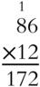 Place a zero at the end of the second line, or if you prefer, just move one space right, and multiply 1 × 86, which obviously is 86. Add the columns to complete the job.