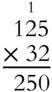 Multiplying 125 by 2 requires a little bit of carrying.