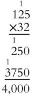 What is the result when 125 is multiplied by 32?
