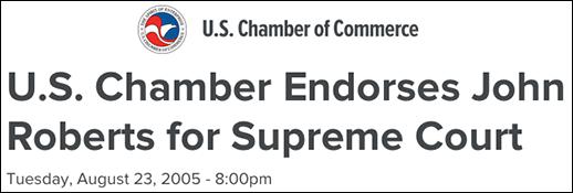 In 2005, a U S Chamber of Commerce lawyer who had helped George W Bush steal an election was nominated to be chief justice of the U.S. Supreme Court. An archconservative lauded as “the go-to lawyer for the business community,” John Roberts was con irmed by a huge bipartisan Senate vote