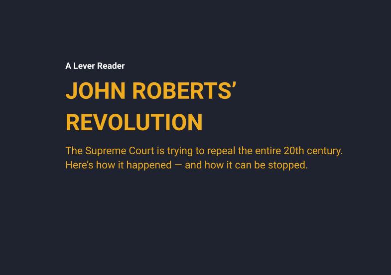 Since we irst launched, The Lever has extensively covered the court’s transformation into a corporate star chamber that delivers ruling after ruling to rig the economy against the non-rich This is all part of John Roberts’ long-term plan
