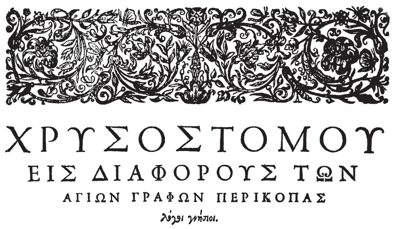 FD Ducaeus, Fronto, ed. and trans. Sancti patris nostri Ioannis Chrysostomi archiepiscopi Constantinopolitani: De diversis novi Testamenti locis Sermones LXXI; Nunc primum Graece et Latine coniunctim editi. Paris: A. Estienne, 1616.