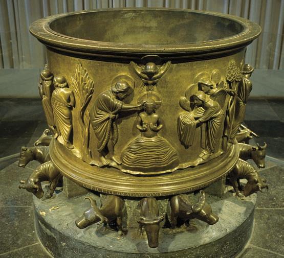 Baptism of Jesus, baptismal font, Li`ege, Belgium, 1118