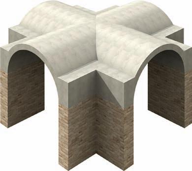 ❙ Barrel vault Also called the tunnel vault, the barrel vault is an extension of a simple arch, creating a semicylindrical ceiling over parallel walls.