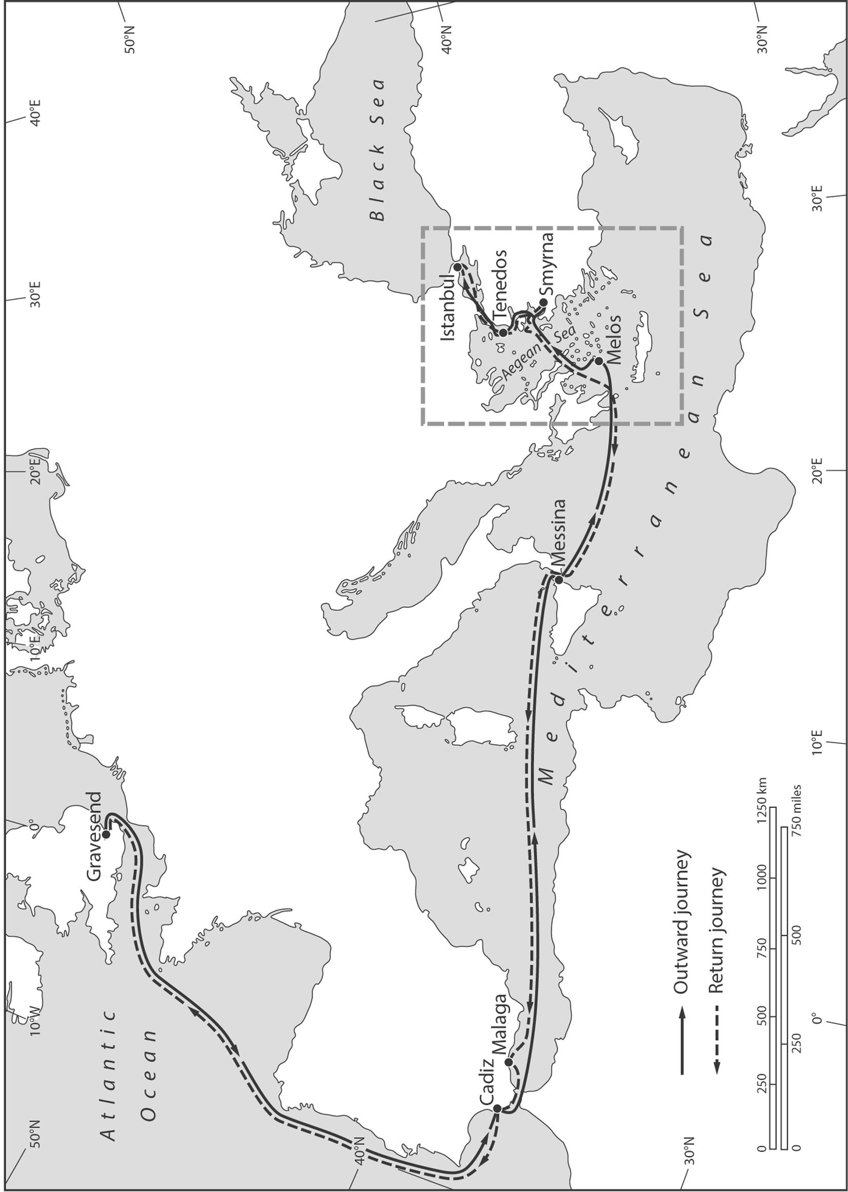 My understanding of John Looker’s Mediterranean world has been deepened by the opportunity to present seminar and conference papers on various aspects of the Blackham Galley’s voyage and sojourn in the Levant. I am grateful to my former colleagues in the Department of History, School of Oriental and African Studies, University of London, and particularly to Professor Gerald Hawting and Dr Benjamin Fortna, for the opportunity in 2001 to present in the department’s Middle Eastern History seminar some preliminary findings based on my first reading of the manuscript. I am also grateful to my friends in the Turcology section of the Department of Arabic, Persian and Turkish Studies at Leiden University, and in particular to Dr Maurits van den Boogert and Dr Merlijn Olnon, for an invitation in 2005 to present a paper which allowed me to speak more at length on some of the medical and meteorological material in Looker’s ‘Journall’.