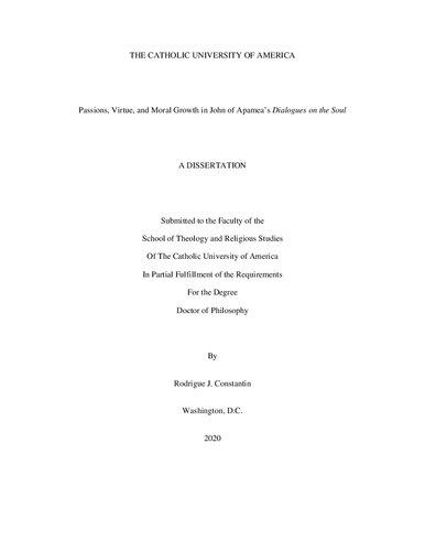 Passions, Virtue, and Moral Growth in John of Apamea's Dialogues on the Soul Rodrigue J. Constantin