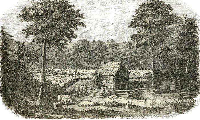 Engraving of a typical frontier farm in western New York (ca. 1820).