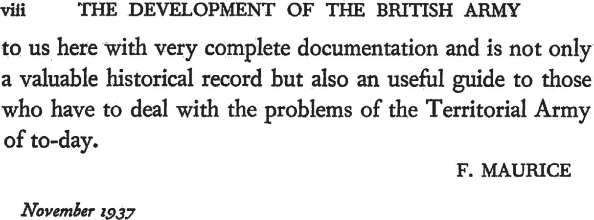 to us here with very complete documentation and is not only a valuable historical record but also an useful guide to those who have to deal with the problems of the Territorial Army of to-day.