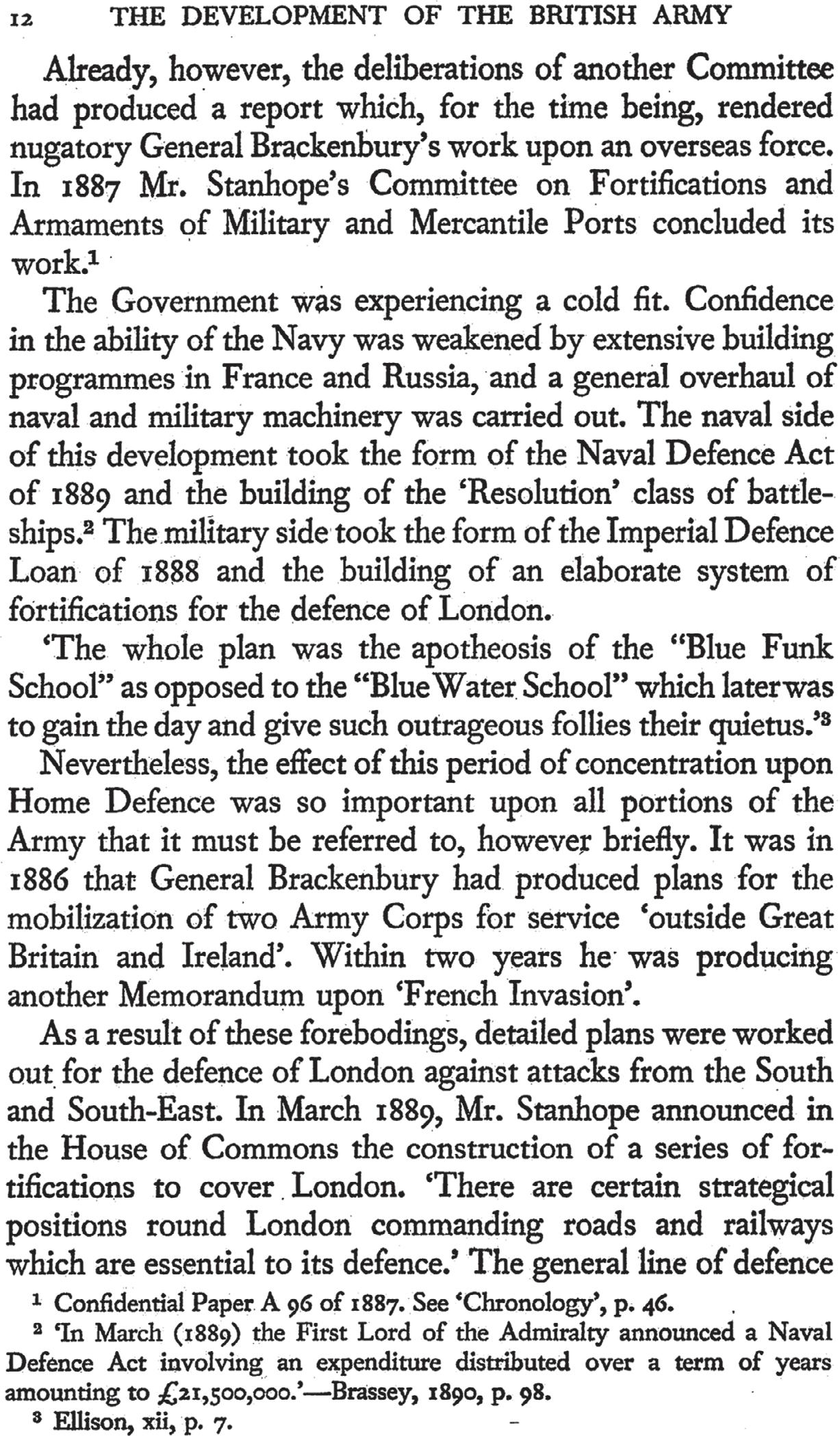 Nevertheless, the effect of this period of concentration upon Home Defence was so important upon all portions of the Army that it must be referred to, however briefly. It was in ·1886 that General Brackenbury had produced plans for the mobilizcJ.tiOn of two Army Corps for service 'outside Great . Britain and Ireland'. Within two years he· was producing another Memorandum upon 'French Invasion'.