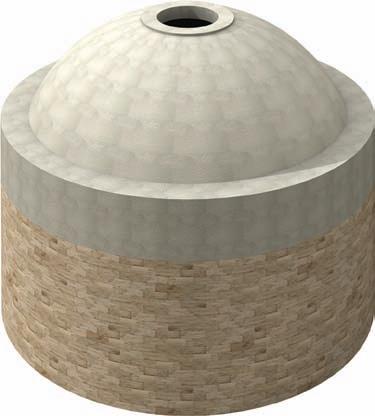 ❙ Dome The hemispherical dome may be described as a round arch rotated around the full circumference of a circle, usually resting on a cylindrical drum. The Romans normally constructed domes using concrete, a mix of lime mortar, volcanic sand, water, and small stones, instead of with large stone blocks. Concrete dries to form a solid mass of great strength, which enabled the Romans to puncture the apex of a concrete dome with an oculus (eye), so that much-needed light could reach the interior of the building.