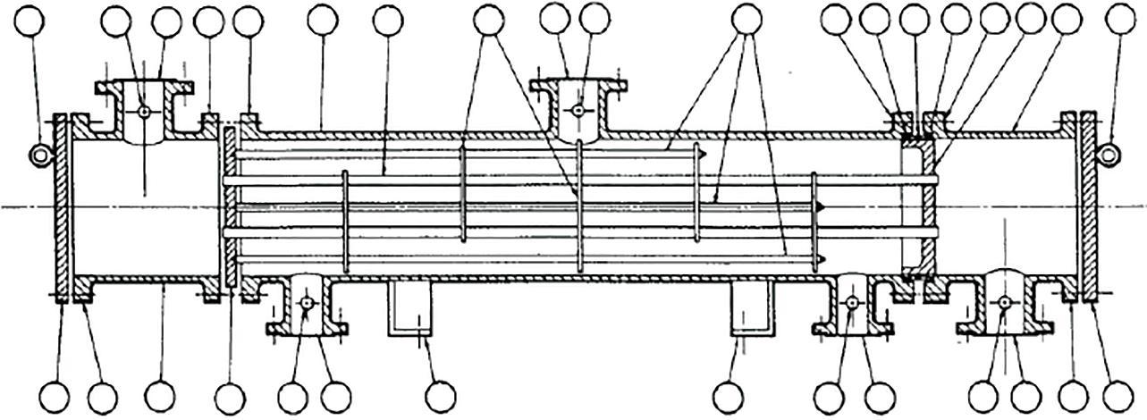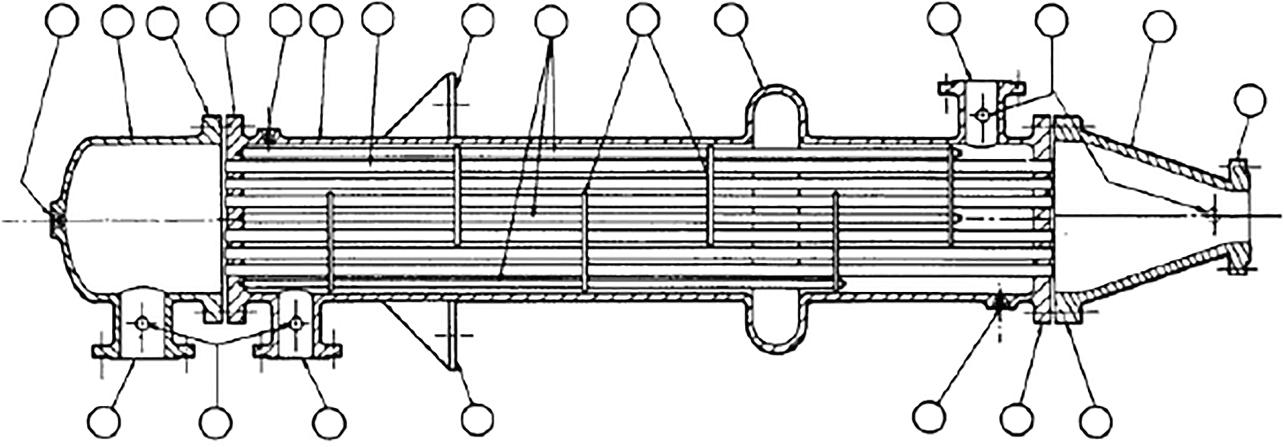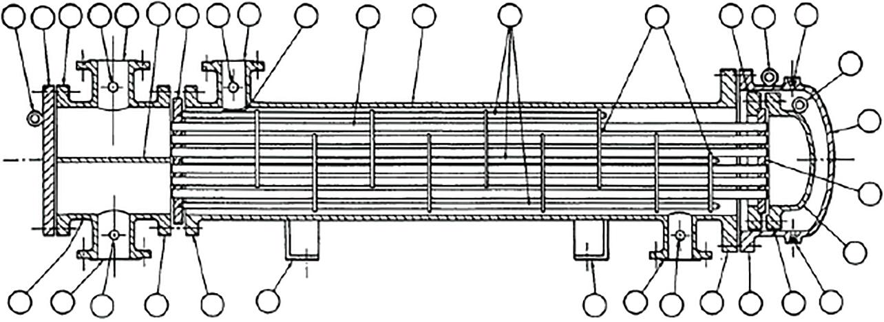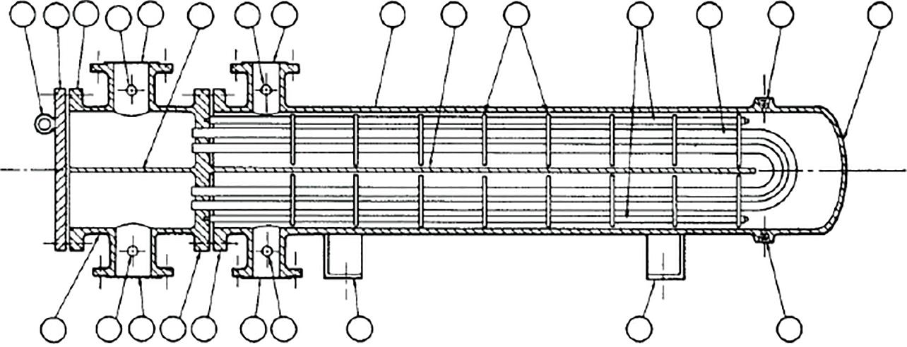• Rear header—this is where the tube-side fluid leaves the exchanger or where it is returned to the front header in exchangers with multiple tube-side passes.