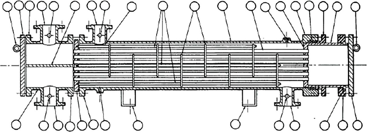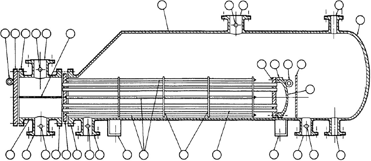 Figure 21.1A Nomenclature for Heat Exchanger Components. Figures 21.1A–G used by permission: Standards of Tubular Exchanger Manufacturers Association, 7th Ed., © 1988. Tubular Exchanger Manufacturers Association, Inc.
