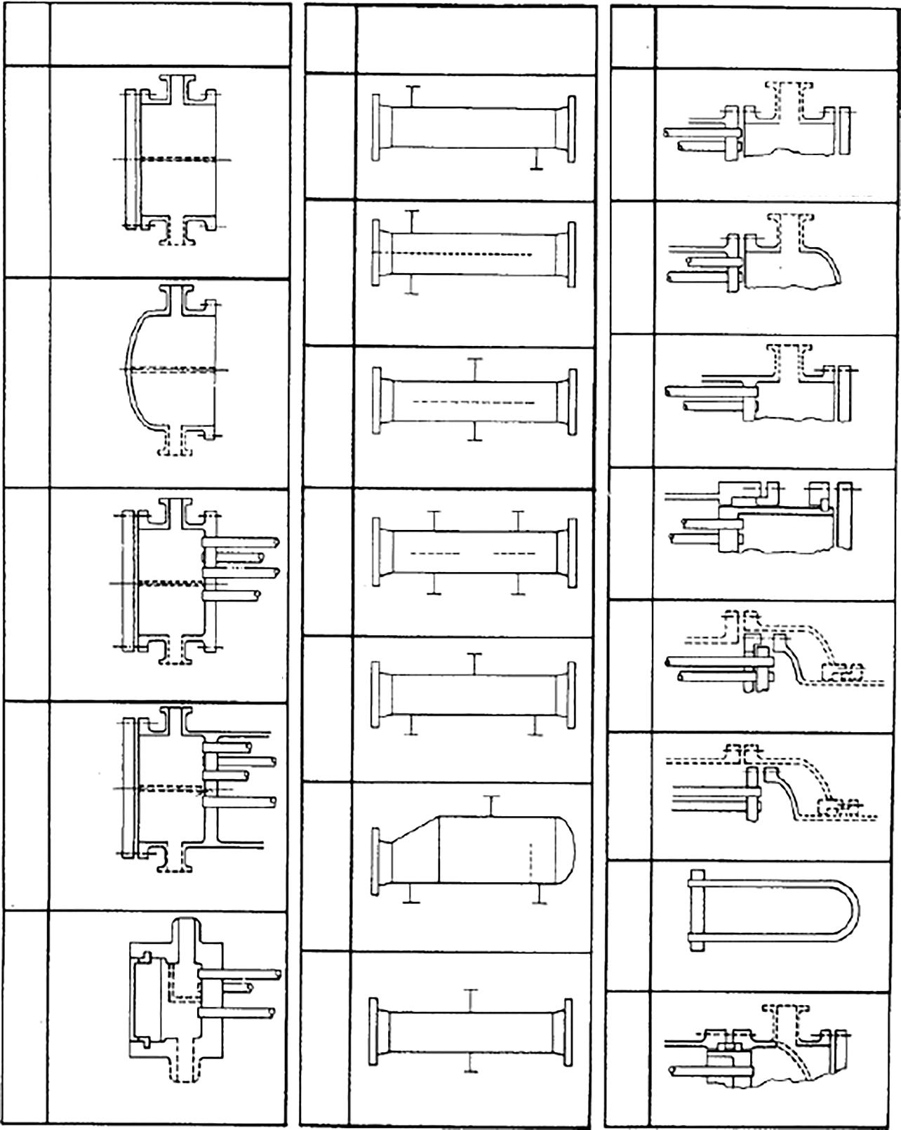 PASS SHELL FIXED TUBESHEET LIKE “A” STATIONARY HEAD FIXED TUBESHEET LIKE “B” STATIONARY HEAD FIXED TUBESHEET LIKE “N” STATIONARY HEAD OUTSIDE PACKED FLOATING HEAD FLOATING HEAD WITH BACKING DEVICE PULL THROUGH FLOATING HEAD U-TUBE BUNDLE EXTERNALLY SEALED FLOATING TUBESHEET