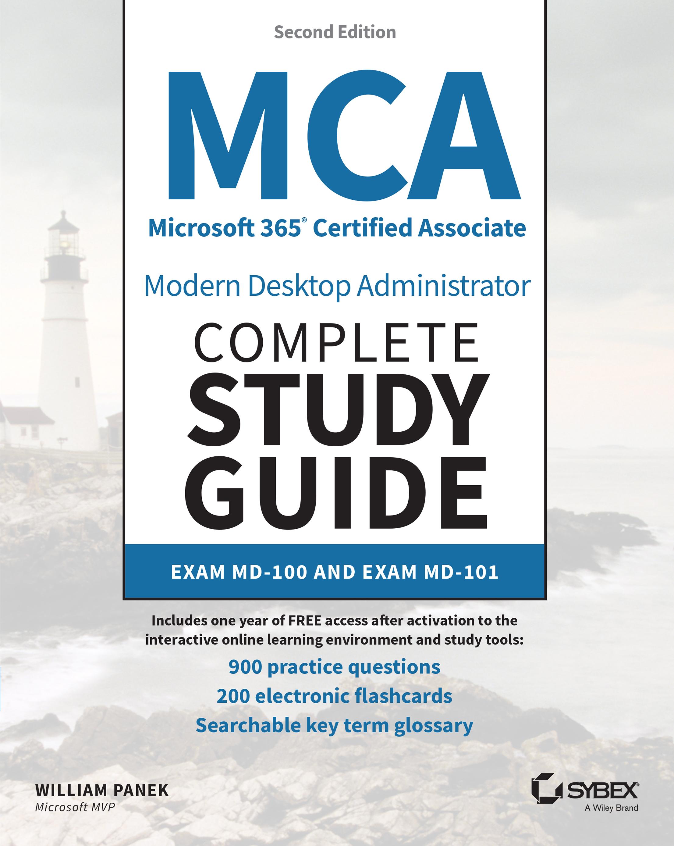 Trademarks: WILEY, the Wiley logo, and the Sybex logo are trademarks or registered trademarks of John Wiley & Sons, Inc. and/or its affiliates, in the United States and other countries, and may not be used without written permission. Microsoft 365 is a registered trademark of Microsoft Corporation. All other trademarks are the property of their respective owners. John Wiley & Sons, Inc. is not associated with any product or vendor mentioned in this book. MCA Microsoft 365 Certified Associate Modern Desktop Administrator Complete Study Guide is an independent publication and is neither affiliated with, nor authorized, sponsored, or approved by, Microsoft Corporation.