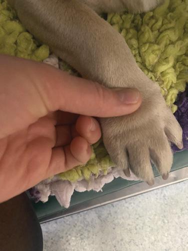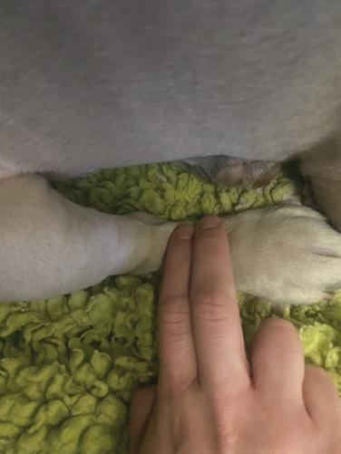 Auscultation of the heart should occur for a full minute on both sides of the thorax as a murmur could be auscultated on one side but not the other. The heart sounds which are heard at the apex of the heart are the atrioventricular valves closing and those heard at the base are the aortic and pulmonic valves. During this auscultation pulses should be palpated to assess pulse quality and whether pulse deficits are present. The patient’s heart rate should be regular or sinus rhythm in dogs (this is when the heart rate increases at the time of inspiration and then decreases at expiration). Capillary refill time should also be checked to ensure it is adequate (Duncan 2009). Pulse deficits occur when a cardiac contraction does not generate a pulse. Strong peripheral pulse can indicate that the patient has good perfusion (Savino et al. 2007). Areas where peripheral pulses should be palpated can be seen in Figures 1.2–1.4. Cats should be auscultated for a gallop rhythm which may be seen if the patient has hyperthyroidism, hypertrophic cardiomyopathy or is anaemic.