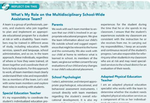 reflect on This What’s My Role on the Multidisciplinary School-Wide Assistance Team? 54