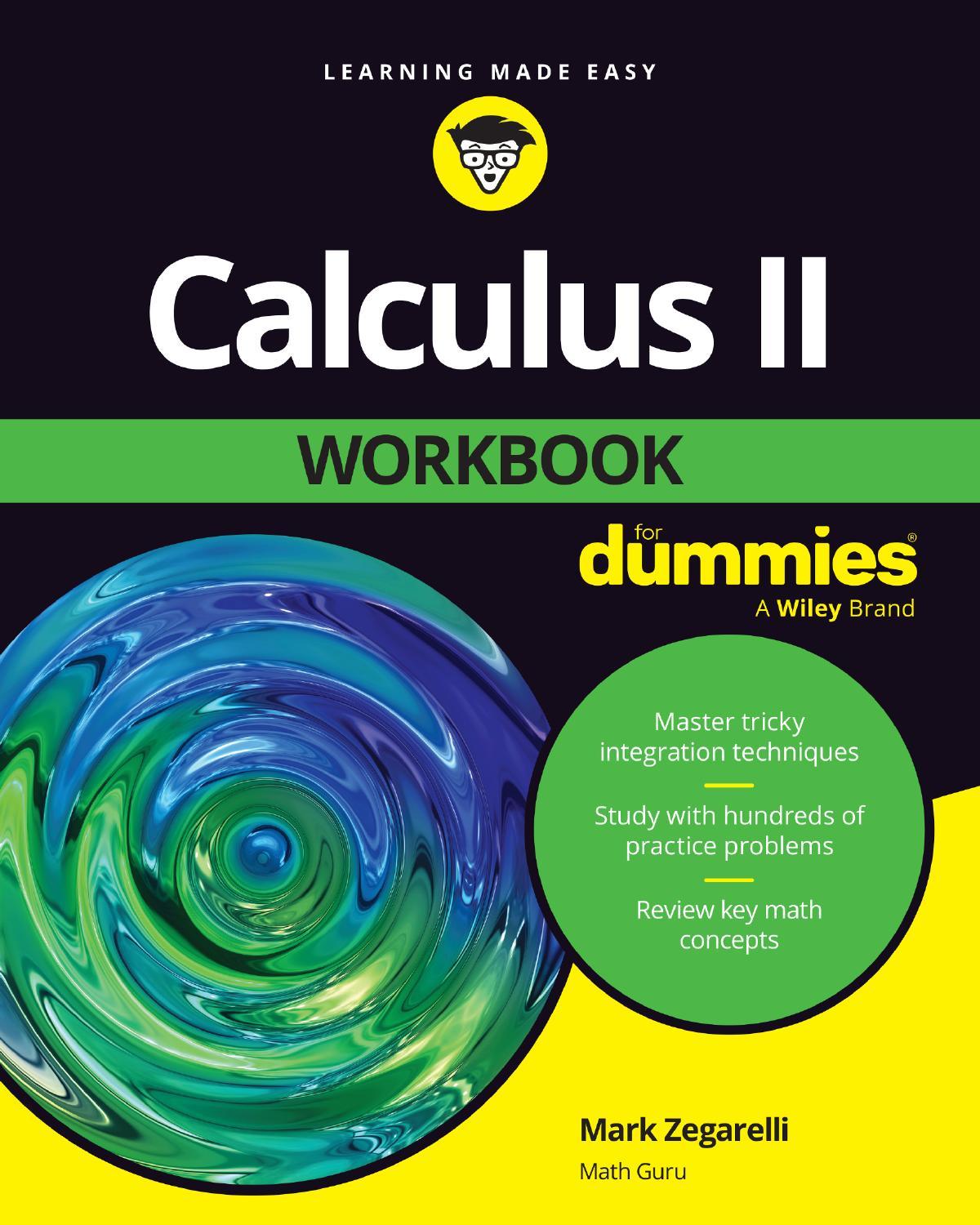 I expect that you know some things from Calculus I, Algebra, and even PreAlgebra, but I don’t throw you in the deep end of the pool and expect you to swim or drown. Chapter 2 contains a ton of useful Algebra and Pre-Algebra tidbits that you may have missed the first time around. And in Chapter 3, I give you a review of the most important topics from Calculus I that you’re sure to need in Calculus II. Furthermore, throughout the book, whenever I introduce a topic that calls for previous knowledge, I point you to an earlier chapter or section so you can get a refresher.