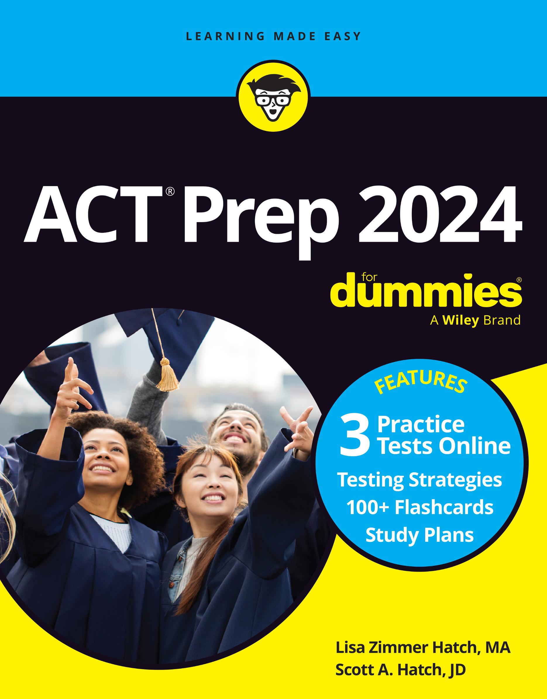 Welcome to ACT Prep 2024 For Dummies with Online Practice. This is a nondiscriminatory, equal-opportunity book. You’re welcome to participate whether you’re a genius or (like us) you need a recipe to make ice. Besides, the book’s title is not a slam at you. You’re not the dummy; the test is (and we’ve heard it called worse, believe us — especially on the Friday night before the exam).