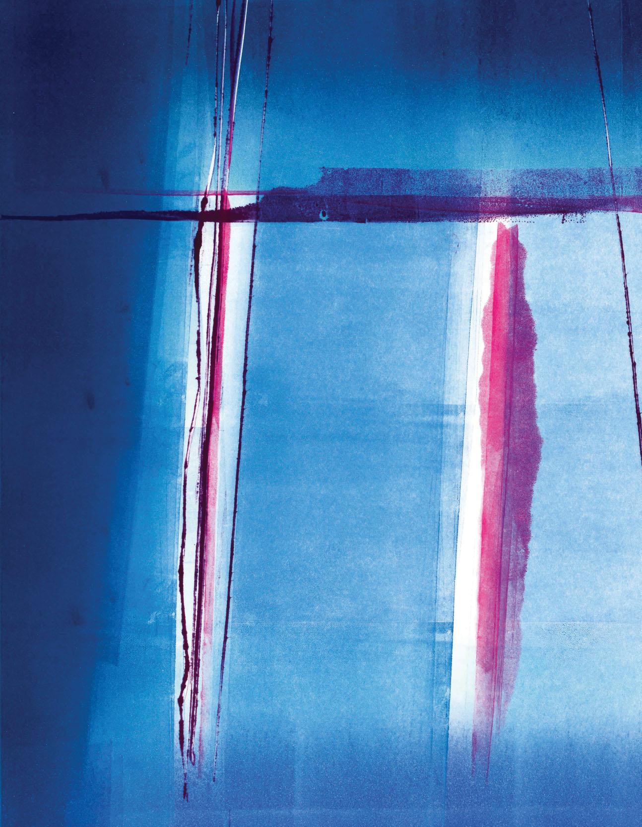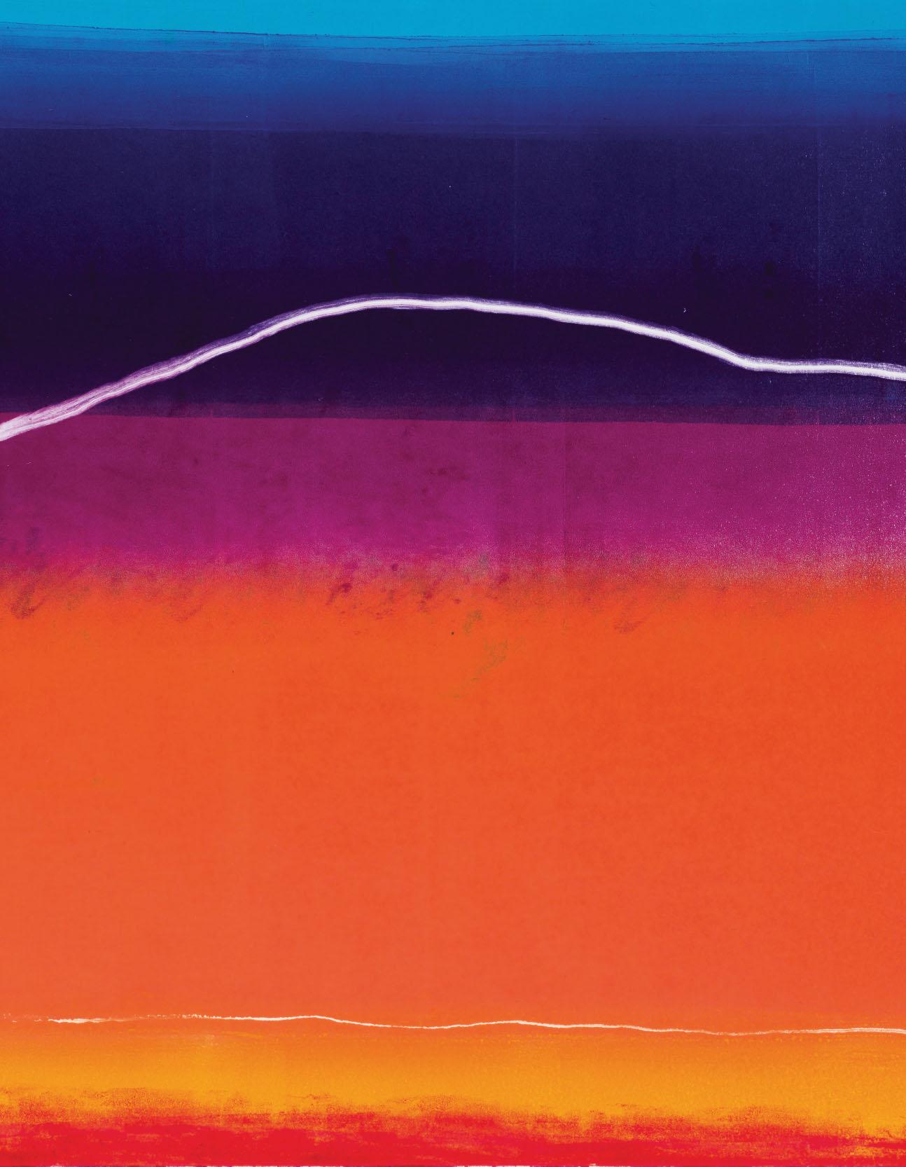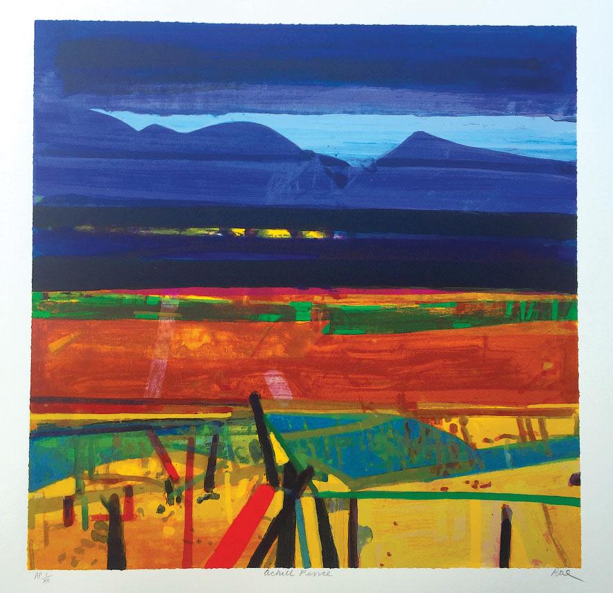 Rae’s work explores the human impact on, and perception of, the world around us; how humankind’s presence in the landscape is defined by the marks we leave, and how colour and form affect our emotions, memory and imagination. The physical layering of texture and colour in her work, such as in the silkscreen print here, echoes the layered history, mood and atmosphere that her vision depicts.