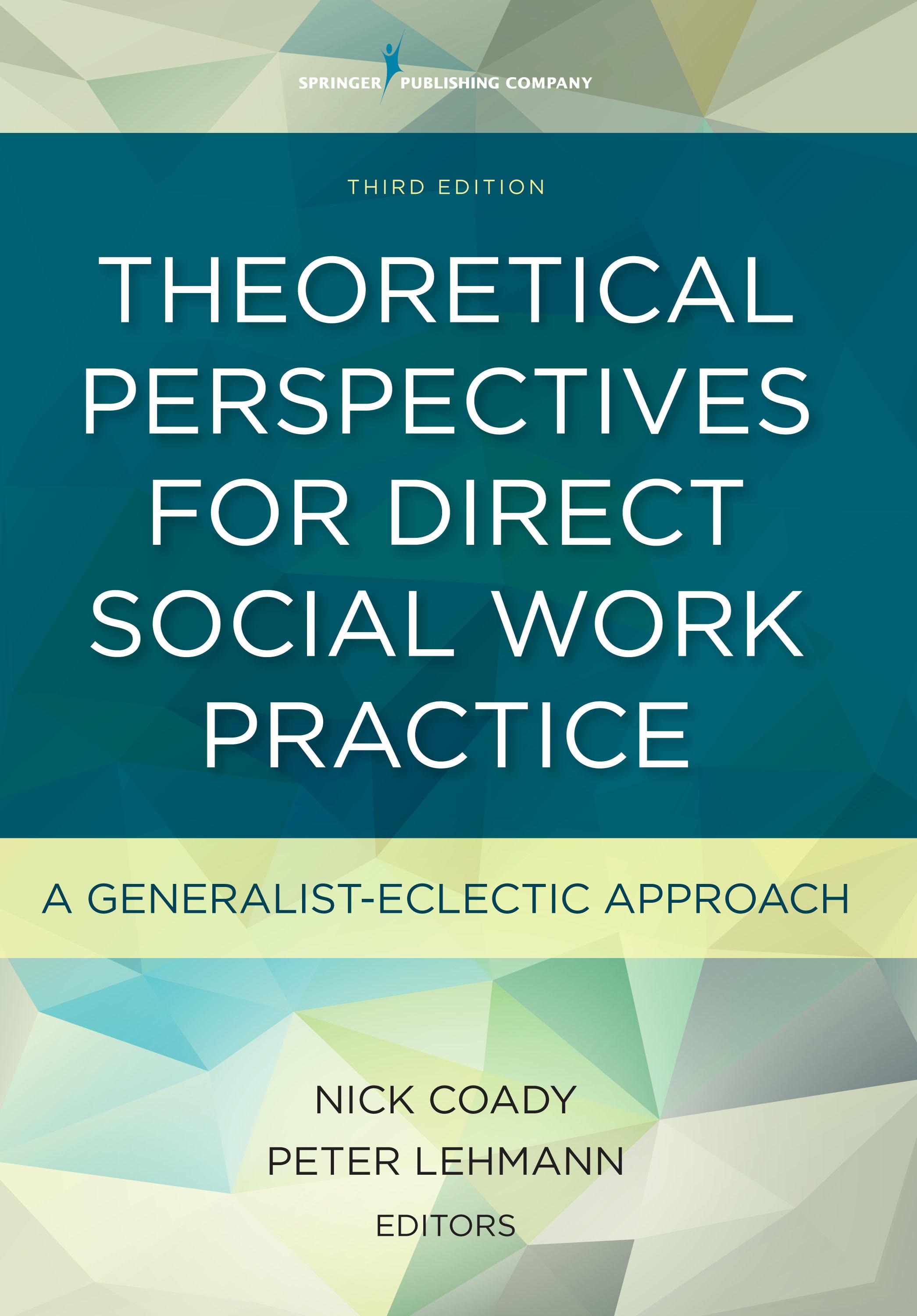 The primary purpose of the third edition of our book continues to be to provide an overview of theories for direct social work practice and a framework for integrating the use of theory with central social work principles and values, as well as with the artistic elements of practice. It is intended primarily for graduate-level social work students and practitioners; however, we know that many undergraduate social work programs also use the book. This book has similarities to other books that provide surveys of clinical theories for social work practice; however, we think it has a number of distinctive and useful features. In brief, these features include: (a) grounding direct practice specialization firmly in the generalist perspective of social work practice; (b) documenting the trend toward, and rationale and empirical support for, eclecticism in the broad field of counseling/psychotherapy, and reviewing various approaches to eclecticism; (c) bringing order to, and demystifying theories by differentiating among levels of theory, organizing direct practice theories into like groupings, and providing an overview of the central characteristics of each grouping of theories; (d) providing a critical perspective on the dominant, scientific paradigm of direct practice that centers the use of theory and technique, and putting equal emphasis on the artistic elements of practice; and (e) proposing the problemsolving model as a useful structure for facilitating the integration of the artistic and scientific elements of practice.