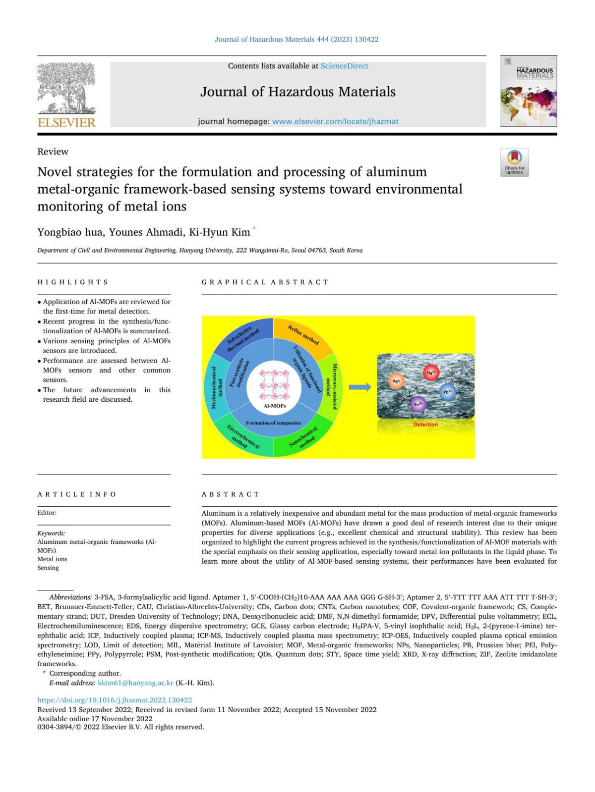 Novel strategies for the formulation and processing of aluminum metal-organic framework-based sensing systems toward environmental monitoring of metal ions Yongbiao Hua