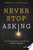 Title: Never stop asking : teaching students to be better critical thinkers / Nathan D. Lang-Raad.