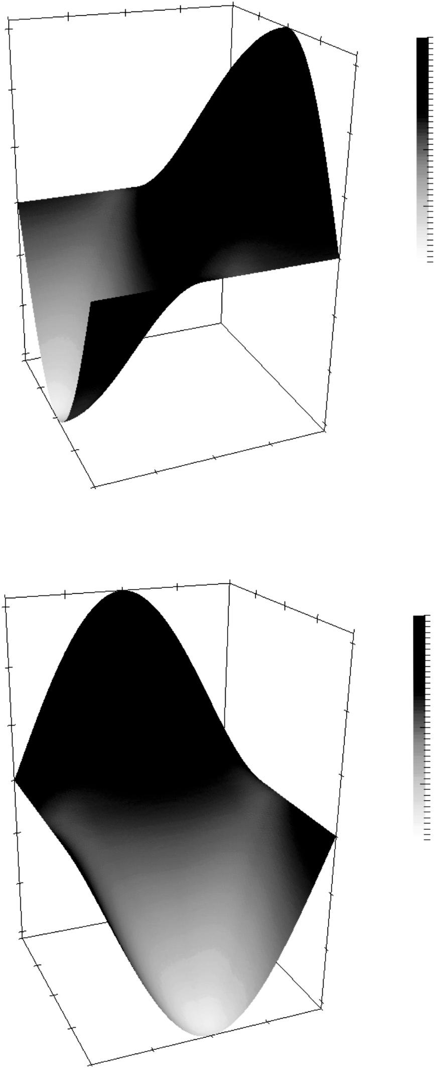 Letusconsideranexample.Assumethatthetemperaturedoesnotvaryinthe ��-direction.Inthatcase,the problemcanbeposedina2Dsetting.Letthedomainbetheopenunitsquare Ω=[0,1]2.Ascalarfunction definedontheunitsquareisshowninFigure 1.2.Thefunctionispiecewiseconstant.Wetakethisfunctiontobe theheatsupply ��.Adiscontinuousheatsupplyisarealisticassumptioninseveralsituations.Onecouldimagine anelectriccurrentflowingthroughametal.Thentheheatisgeneratedateverypointinsidethemetal,butnot outside.Assumingthattheheatgenerationatsomepointisproportionaltotheelectricalcurrent,afunction �� containingjumpsreallyisphysicallymeaningful.Experimentally,onewouldmeasureatemperaturedistribution similartotheoneshowninFigure1.3.The��-componentofthegradientofthistemperaturedistributionisshown inFigure1.4.Itiseasilyobservedthatthegradientisnotdifferentiableatcertainpoints.Therefore,thetemperature distributioninFigure 1.3 isnotasolutionofEquation(1.1a),althoughitisthecorrectsolutionfromaphysical pointofview.