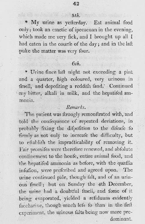 Figure 1.4 Extract from John Rollo’s account of two cases of diabetes (1797). Rollo was well aware of the problem of not following a treatment regimen. Note that ‘the patient was strongly remonstrated with, and told of the consequences of repeated deviations’. Source: Courtesy of the Wellcome Library, London.
