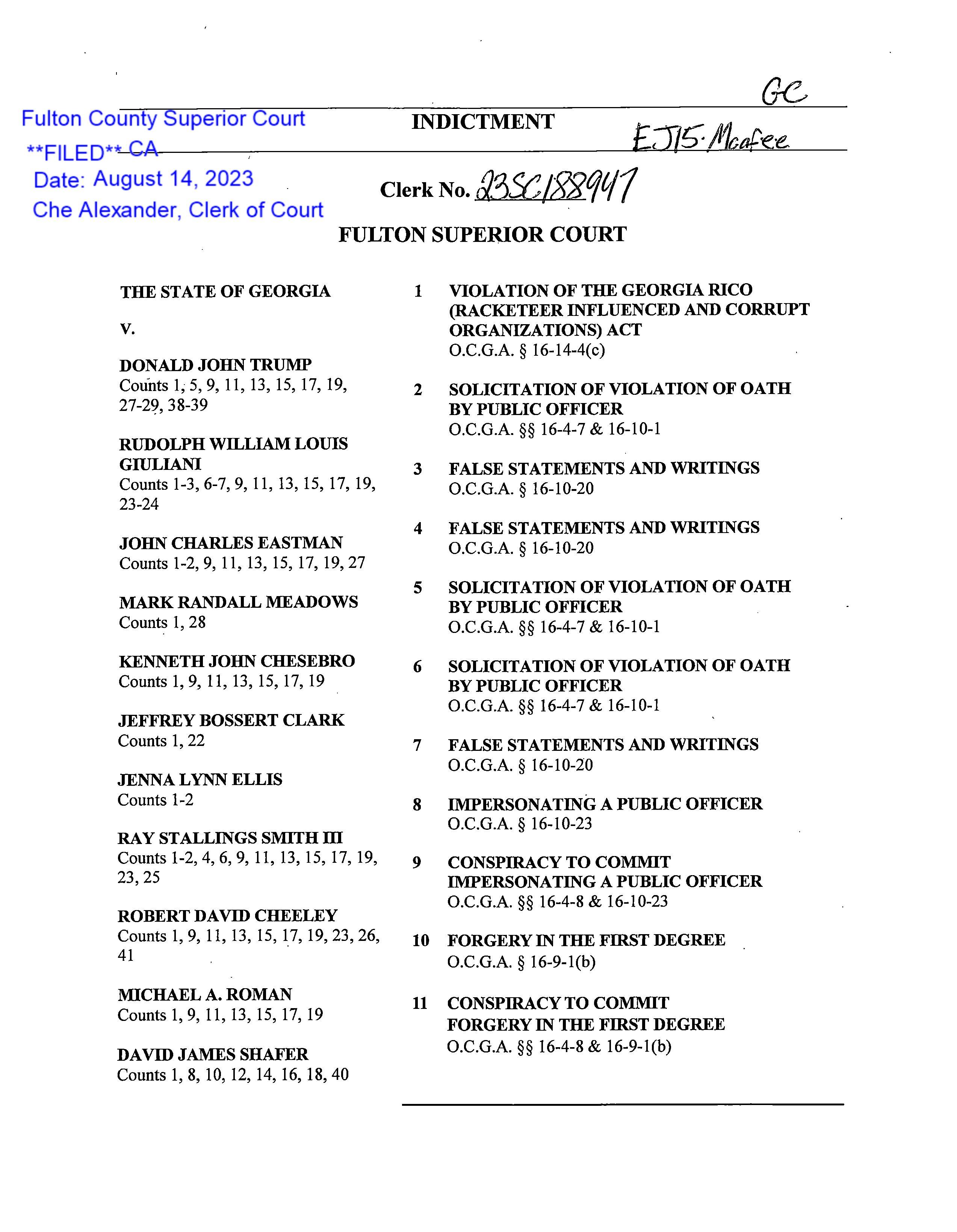 GeorgiaCriminalIndictment"TheStateofGeorgia vs.DonaldJohnTrump&others"/August14,2023