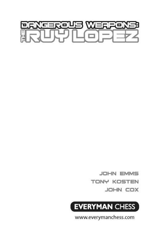 The Ruy Lopez enjoys a long and distinguished history, and one would be forgiven for thinking that, by now, its theory would have almost settled. Recent evidence, however, suggests that the opposite is true; its theory is still developing rapidly and no doubt there are many discoveries yet to be made. These days Black players are less likely to choose the ‘main lines’ –there are a greater number of options for Black that are now recognized as fully acceptable. Perhaps the most obvious example is the Berlin Defence, which Kramnik used so effectively to frustrate Kasparov in their 2000 World Championship match, but there are many other possibilities too. In turn, White players have been forced to fight back. No longer can White expect to apply the Spanish Torture, game after game. Lopez players must be more flexible and prepared to take on a wider variety of positions, or employ a system-type approach with d2-d3, a choice which has become noticeably popular in recent times. I would like to thank my co-authors Tony Kosten and John Cox, for all their hard work and enthusiasm in researching and writing their chapters. I very much hope that readers are inspired to try out the ideas discussed in this book, whether they are playing the Ruy Lopez or fighting against it.