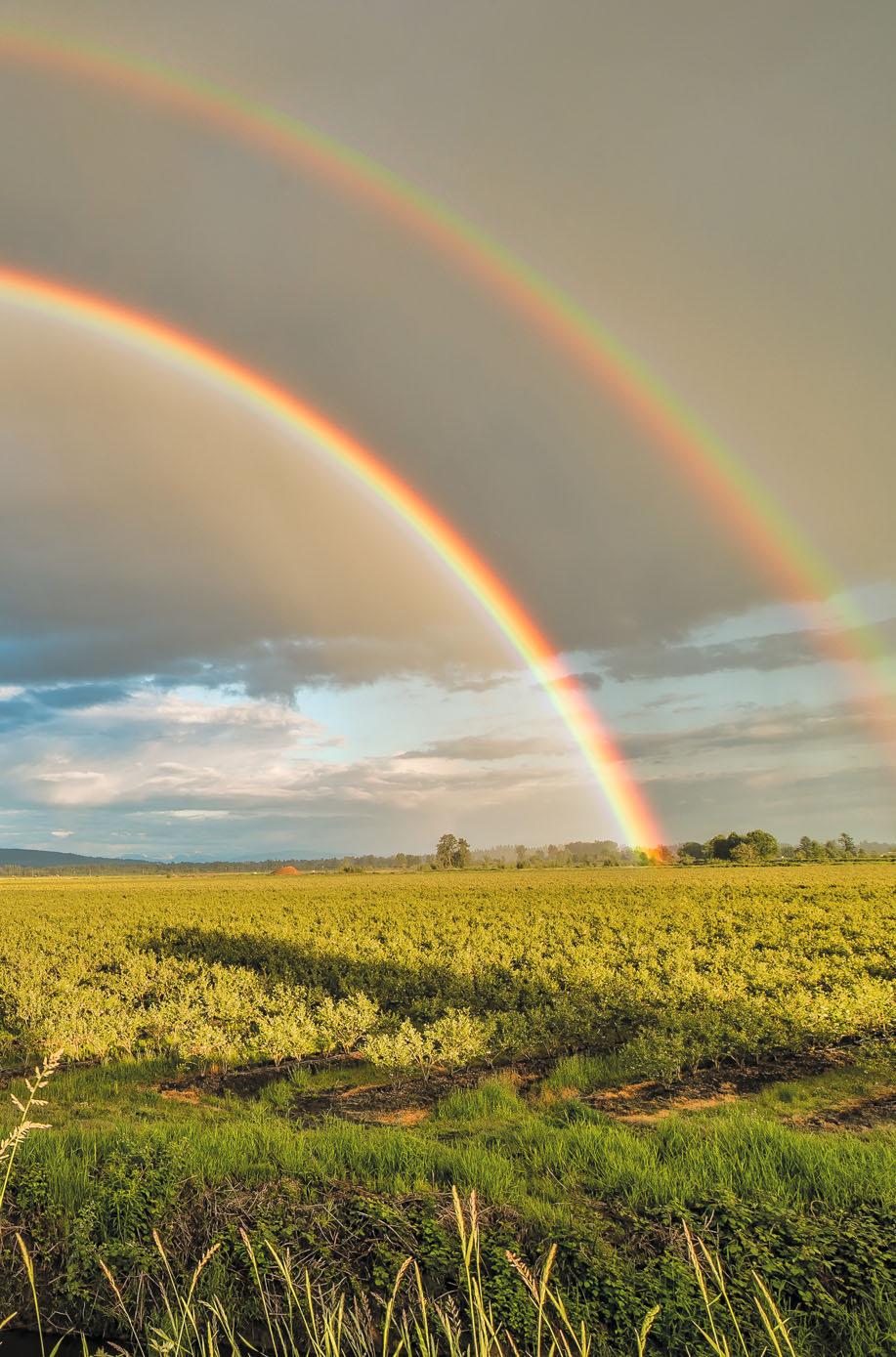 A spraybow may not be as bright as a rainbow, but what it lacks in brightness, it makes up by being under your control. Spend half an hour on a sunny day with a garden spray and you’ll discover several of the rainbow’s lesserknown secrets such as that the size and number of drops play a crucial role in determining how bright and colourful a rainbow can be. You can also confirm that the angular size of the arc is constant no matter how far you are from the drops. Step back with your thumb held at arm’s length and parallel the arc of the bow: however far you are from the spray, the rainbow arc is always the same width as your thumb. And if you have never seen a moonbow, you can always create a spraybow on a moonlit night. While no substitute for the real thing, you’ll find that it has an eerie fascination all of its own.17