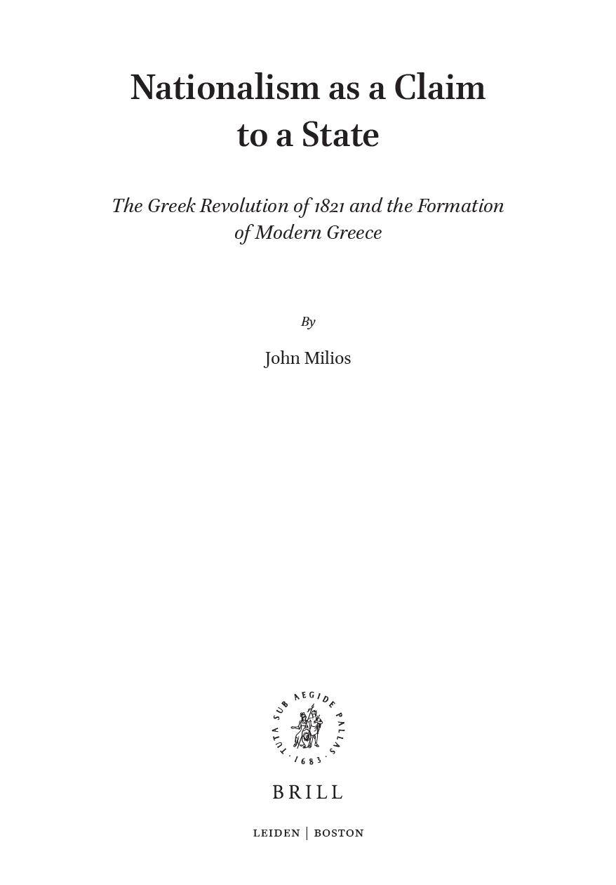 Title:Nationalismasaclaimtoastate:theGreekRevolutionof1821andthe formationofmodernGreece/byJohnMilios.