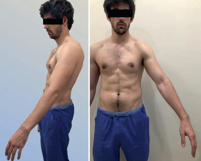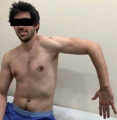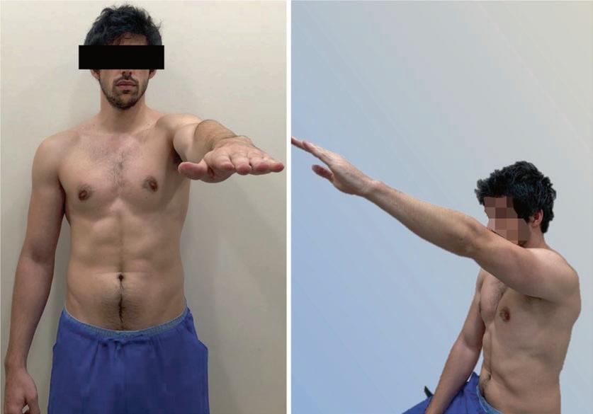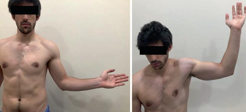 plane is with the humerus slightly extended to the resting position angle or in 90° with the foor in the coronal plane. The maximum angle is around 60° of extension (AAOS, 1965). Involved in this action are deltoid muscle (posterior fbers), teres minor, teres major, the long head of triceps brachialis and latissimus dorsi. Paralysis of any of the muscles may affect the extension in different degrees depending on the muscle involved.
