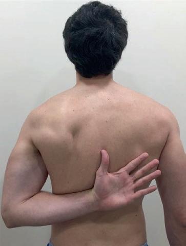 Typically, we would explore internal rotation by asking the patient to try and reach as up in the spinal column as possible (Fig. 3.6a); in this maneuver, we reach the maximum internal rotation although it also depends on the elbow, wrist,