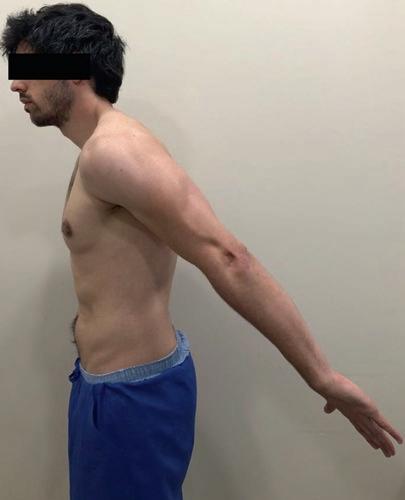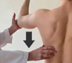 Examination can be performed in a seating position when the patient has trouble standing up, although it is preferred to evaluate and assess the joint in a standing position. It should always be performed bilaterally from the front and from the back in order to detect any muscular atrophy or scapular dyskinesia.