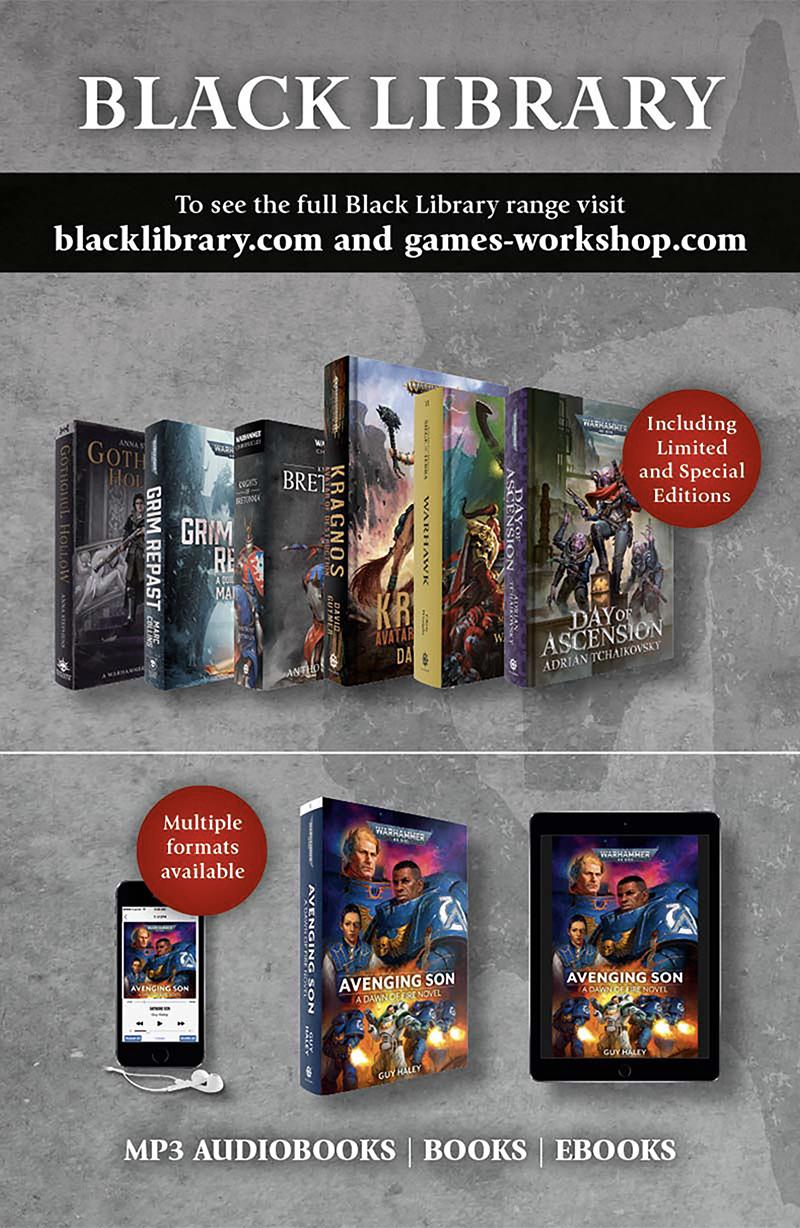 Above the Throneworld a ship lies still in the void. It is dark-hulled, a dart of metal the green of shadowed forests. It is called the Absolution, and it has come across the galaxy from the ruin of a war around a world called Fenris. It has come bearing warnings of an ancient enemy returned to the Imperium, of ruin and disaster. And it has arrived to find that catastrophe has outrun it. The enemy it brought warning of is not far away but everywhere: grinning from the night sky and capering in the flames lighting the surface of Terra.
