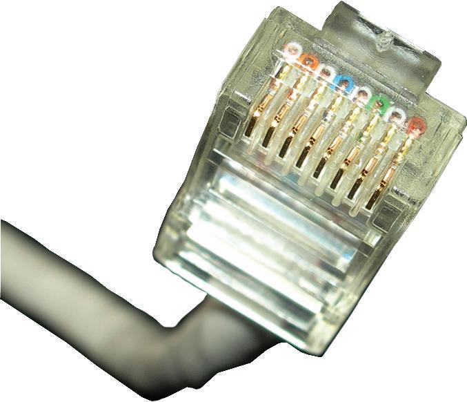 This type of cable is known as twisted pair. It has an RJ-45 plug on the end, which is molded so it can only connect one way to the RJ-45 port. It also has a tab that locks it in place. The RJ-45 plug is slightly larger than a telephone cable’s RJ-11 plug, but looks very similar. Another difference is that the phone plug usually has four wires, whereas the RJ-45 plug has eight.