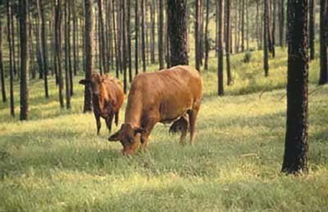 Forestland consistsofsomewhatopen,tree-covered areasthatsupportforageandgrasslandspeciesthatcan begrazed(Garrettetal.2000)orbrowsed(Figure1.3). Grazingofferssomeanimalproductionandhelpscontrol understoryvegetation.ThesesystemsintheWestcan expanduseofforestland,orintheEastcanaddafew yearsofcroporforageusebeforethetreecanopycloses inaplannedapproachtoforestmanagement.These systems,ofparticularimportanceinthepineforestsof thesouthernandsoutheasternUS,arerelativelycomplex todesignandmanage,butcanbeveryproductive(Child andPearson1995).