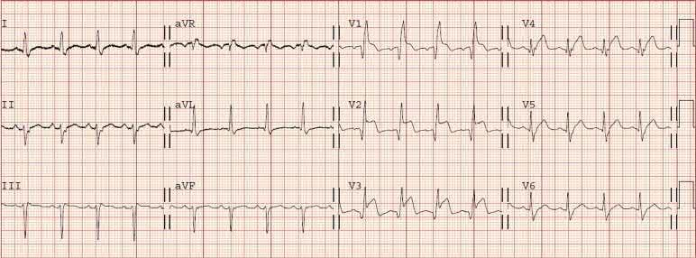 A 60‐year old woman with epigastric discomfort. Her medical history included a treadmill exercise test several years earlier because of negative T waves in V2 to V4 found on a routine