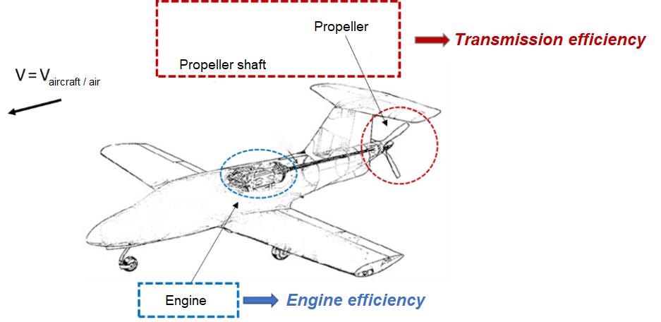 This allows us to define another dimensionless quantity, corresponding to the propulsive efficiency associated with the efficiency of the engine and propulsion system including the power transmission and the system generating the traction (propeller or rotor) (Figure I.9). Let:
