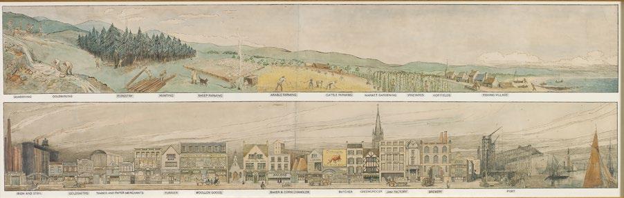 In his 1909 Valley Section, Geddes presents the regional relations between settlements of cities and villages, productive landscapes of agricultural elds and forestry, and resources from shing and mining. Subsequent drawings describe relations along streets, include different occupations and tools, and are situated within speci c geographic contexts, such as Edinburgh. Geddes experimented over decades with different combinations, categorisations and representations. He approached his Valley Section drawings as Christina Leigh Geros (see her article on pp 14–21 of this issue) considers landscape architecture, as an ecology of practices.
