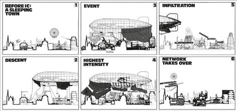 Peter Cook, Instant City Airships, sequence of effect on a typical English town, 1970