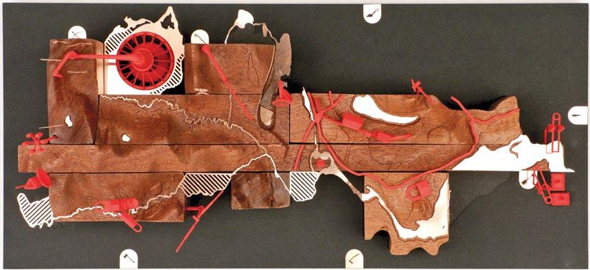 In recent decades, changing processes of urbanisation have transformed landscapes around the world and reframed our conceptualisation of them. New infrastructures, contrasting approaches to their provision and varying patterns of growth have further complicated Geddes’s regional adjacencies of mountains to forests, to elds, to cities, to oceans. As informal settlements intersect with river systems, as governments reinforce national borders, and as design practices invent new urban forms to address growing ecological crises, rereading the physical environments of the past and questioning those of the future has become a necessary task. Tensions between landscape relations, processes of growth, decay, building, occupation, abandonment and erosion require closer critique. Such concerns are the focus of both Luis Callejas and Charlotte Hansson, who examine a series of disputed island territories (pp 46–53), and the discussion of design projects confronting climate crises described by Kate Orff (pp 94–9). The role of design is core in imagining future forms of landscapes, whether as speculative design narratives in Tiago Torres-Campos’s exploration of Manhattan’s geological conditions (pp 38–45) or the experimental pedagogies of Advanced Landscape and Urbanism at the University of Greenwich in London (pp 54–61).