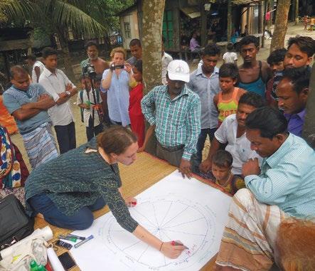 Dr Beth Cullen, drawing monsoon calendars in Louhajong, Bangladesh, Monsoon Assemblages, University of Westminster, London, 2018