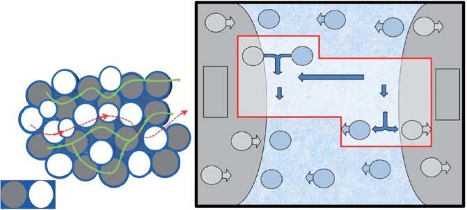Figure1.19 InterfacialionicconductionispresentedinYSZ–carbonatecompositesystem. (a)Twomaterialparticlesfor3YSZand8YSZinthecomposite.(b)Schematicrepresentationof overallO2 conductionincomposites.Solidgreenlinesshowtheoxygentransportingpaths andreddotsrepresenttheelectrontransportingpath.(c)Schematicdiagramrepresentingthe oxideionconduction via hoppingthroughNa+ ionsinpercolationlayer.Source:Reproduced withpermissionfromMaheshwariandWiemhöfer[51].Copyright2016,Elsevier.